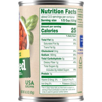 These 14.5 oz cans contain vine-ripened tomatoes that are diced into small pieces and packed with flavor. Use them as a base for your favorite sauces, soups, stews, and casseroles. These tomatoes can also be used as a topping for salads, pizzas, and sandwiches. They are gluten-free and contain no artificial colors, flavors, or preservatives.