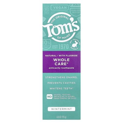 - WHAT YOULL GET: One 4-ounce tube of Toms of Maine Whole Care Toothpaste in Wintermint Flavor